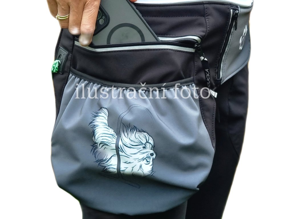 Softshell material, large pocket (sublimation printing) for a toy, treats.