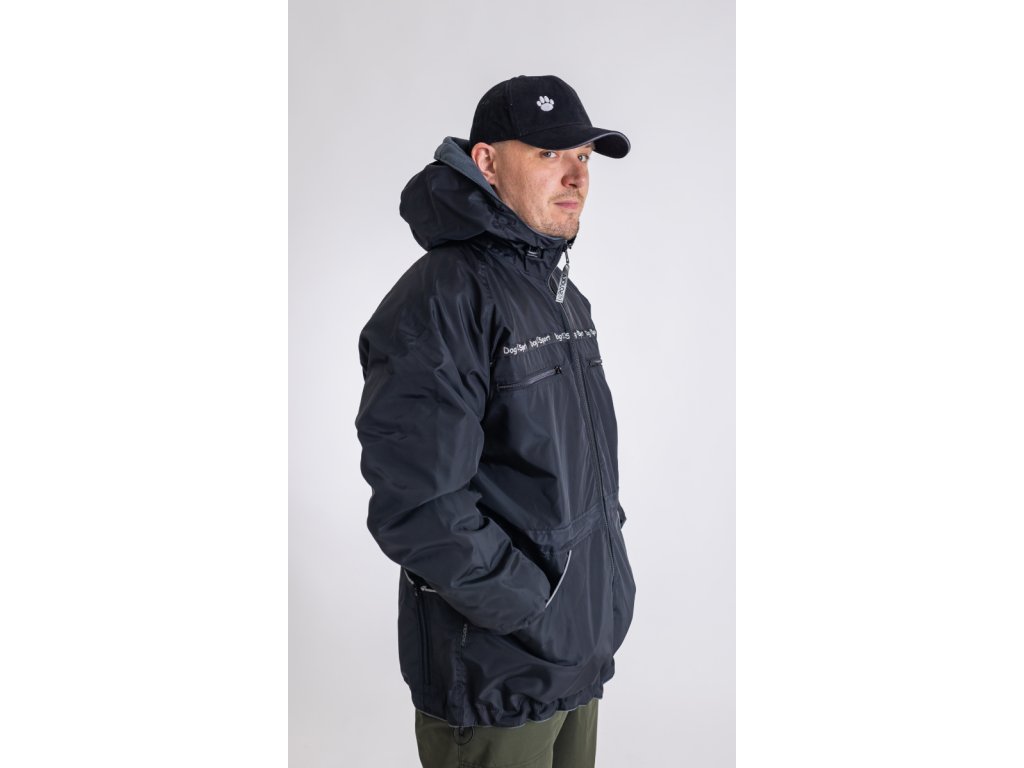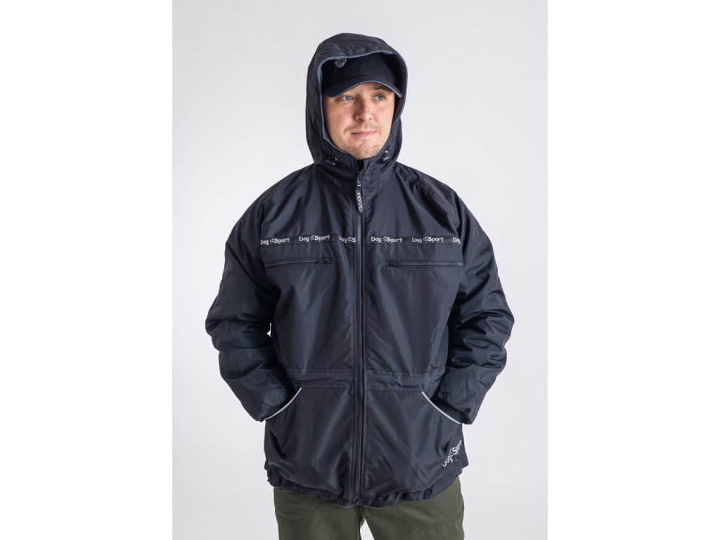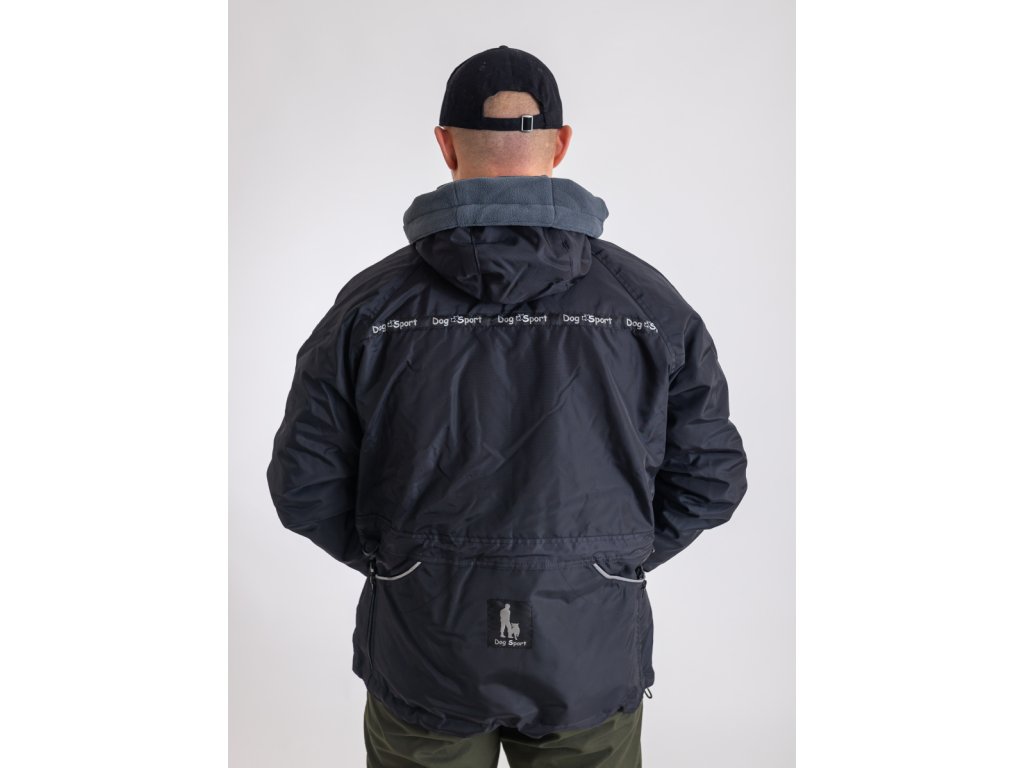 The cut of the jacket is longer, it can be tightened around the waist with an elastic band.
