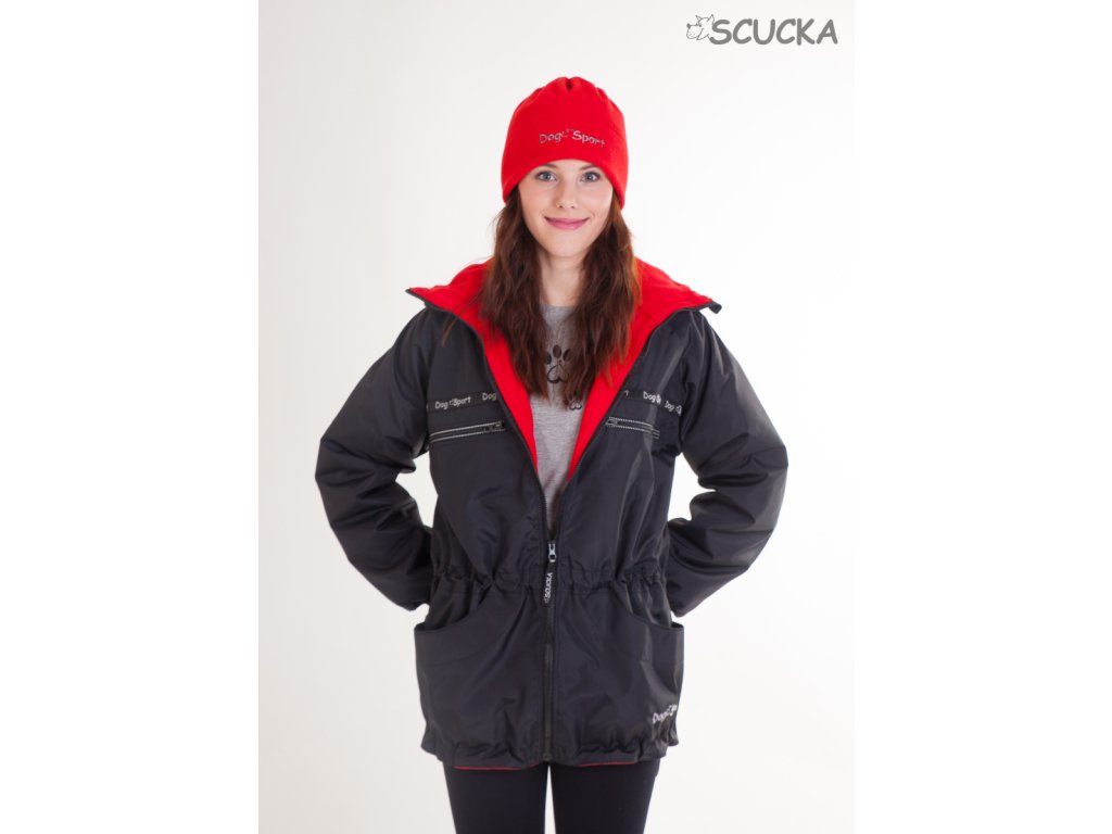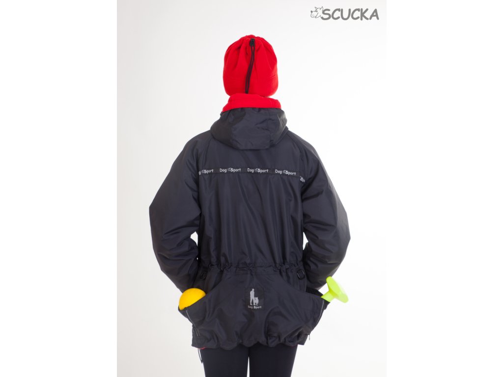 The cut of the jacket is longer, it can be tightened around the waist with an elastic band.