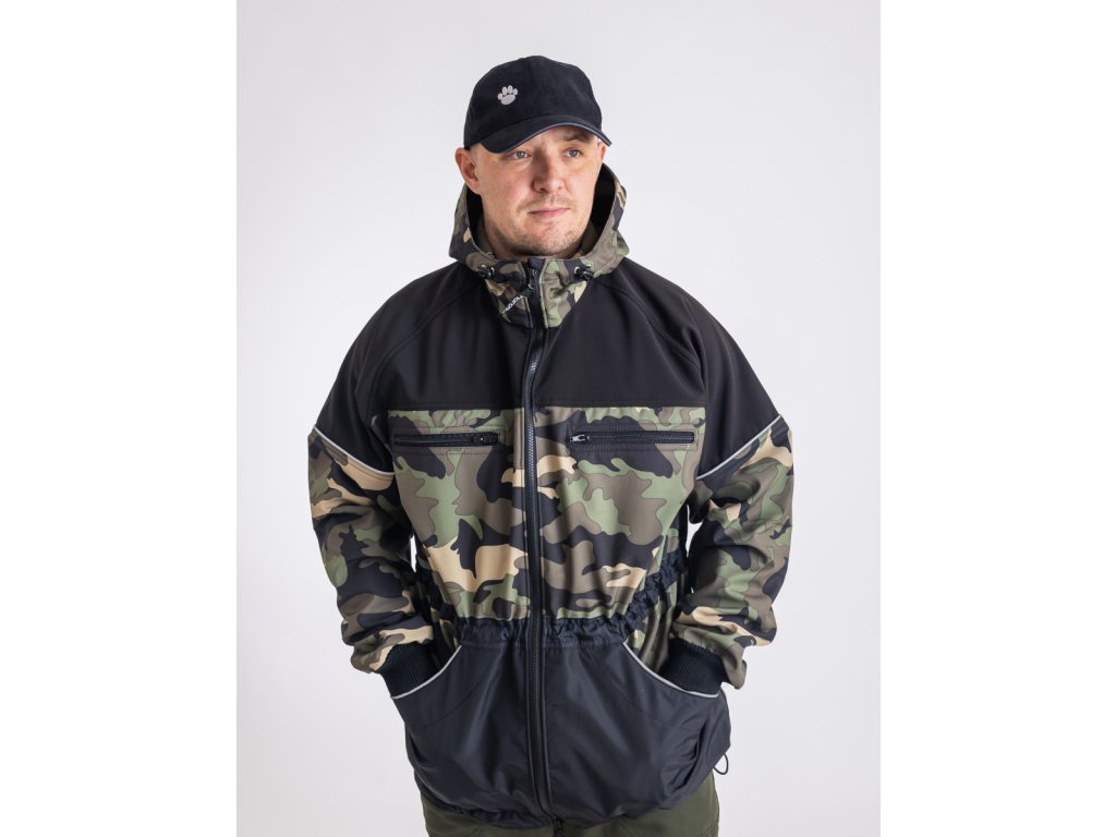 Outer material softshell with membrane, pockets 100% PAD with coating, moisture-resistant, durable material, fleece lining in the hood, front and back.