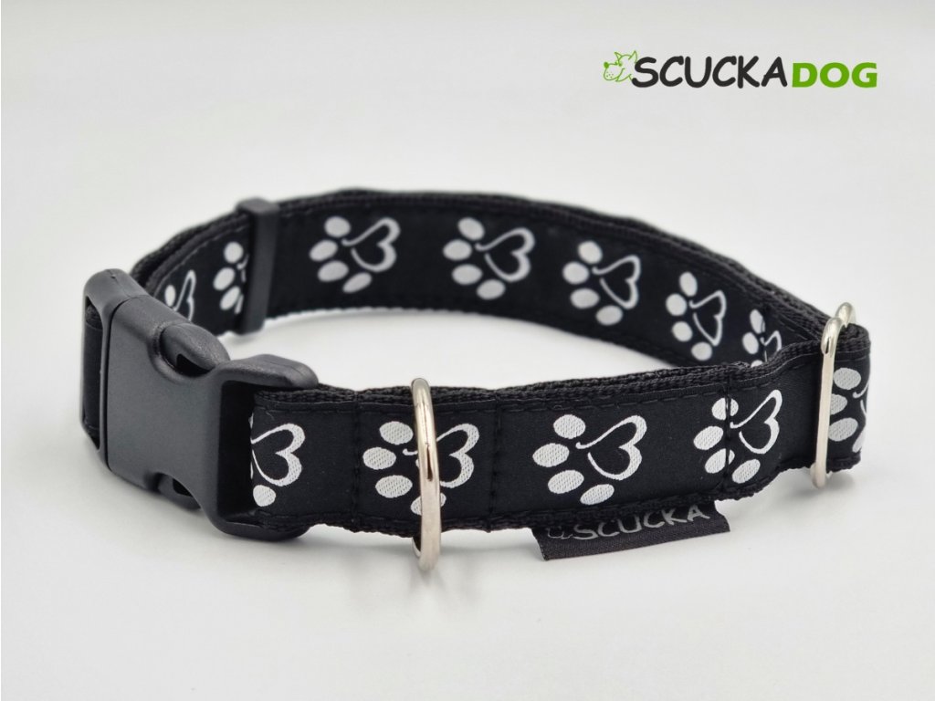 Lehký , měkký , polyamidový pevný popruh šíře 2,5 cm s našitou ozdobnou stuhou s tlapkami.