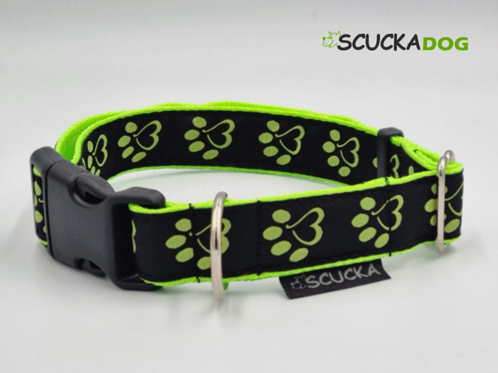 Lehký , měkký , polyamidový pevný popruh šíře 2,5 cm s našitou ozdobnou stuhou s tlapkami.